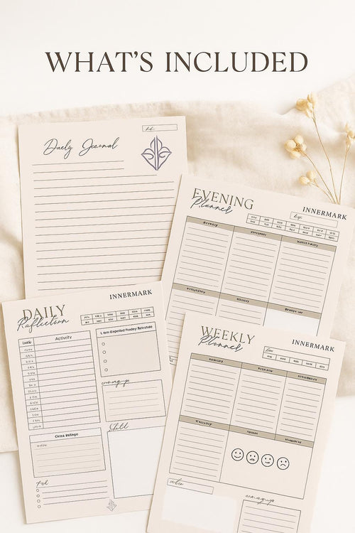 Minimal digital planners and guided journals designed to reduce overwhelm and create clarity.